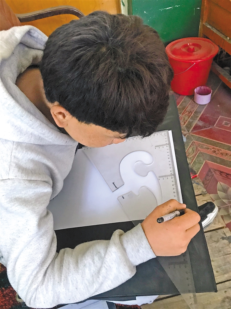 “那段時(shí)間是最難熬的,每天睜開(kāi)眼除了吃飯,其他時(shí)間都在畫(huà)畫(huà)?!甭遄犯嬖V記者,當(dāng)他真正開(kāi)始學(xué)習(xí)時(shí),才深刻體會(huì)到要想成為唐卡手藝人,需要付出更多努力?!耙苍脒^(guò)放棄,但還是咬咬牙堅(jiān)持了下來(lái)。”說(shuō)到這里,洛追有些靦腆地笑了笑。