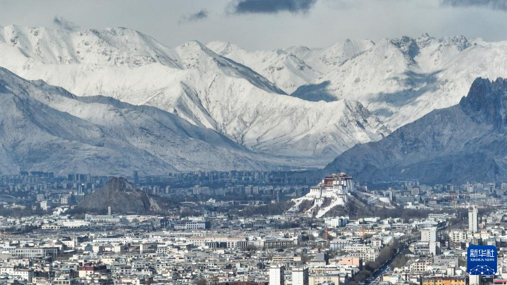 這是2月16日拍攝的降雪后的拉薩市區(qū)(無人機(jī)照片)。新華社記者 晉美多吉 攝?