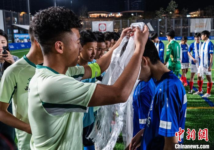 18日晚的香港西沙GO PARK球場,一場“跨越山?!钡淖闱虮荣愓诖碎g舉行,西藏青少年組成雪域雛鷹隊(duì)與香港東方體育會(huì)足球隊(duì)U16隊(duì)在綠茵場上以球會(huì)友。