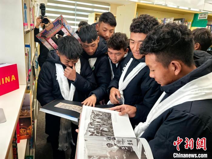 2月20日,參加“跨越山海 以球會(huì)友”藏港青少年足球交流活動(dòng)的西藏自治區(qū)青少年在香港中華基金會(huì)中學(xué)圖書館翻閱介紹西藏的圖冊(cè)。 中新社記者 劉大煒 攝
