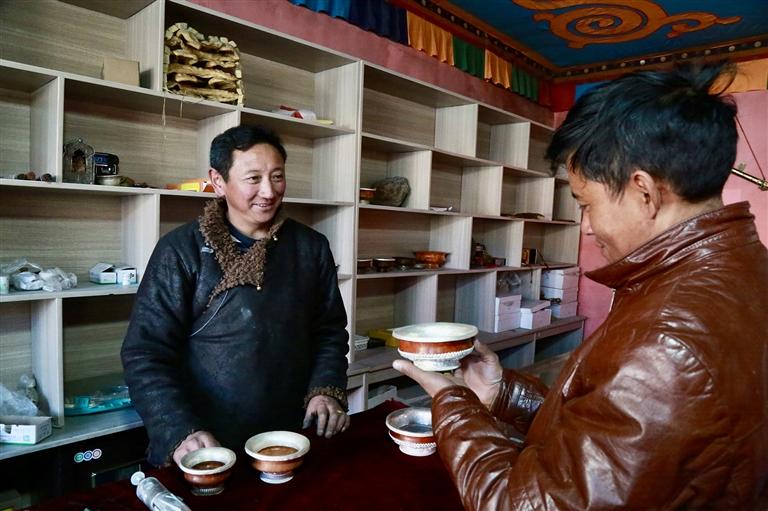 43歲的次央多吉是墨竹工卡縣級(jí)非物質(zhì)文化遺產(chǎn)阿吉祖玉傳承人。這份傳承的使命,自他的祖輩起便已延續(xù)。在他的記憶中,長(zhǎng)輩們熟練掌握這項(xiàng)非遺技藝的身影,深深烙印在他的心中。“阿吉祖玉是祖先傳下來(lái)的東西,不能丟。”抱著這樣堅(jiān)定的想法,次央多吉在年少時(shí)便立下決心,要將這門技藝傳承下去,并不斷發(fā)揚(yáng)光大。