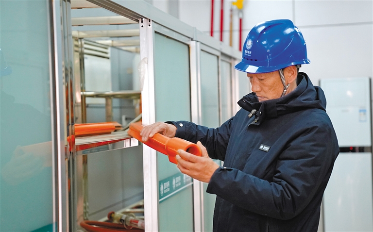 扎西尼瑪在進(jìn)行電力安全工器具檢查。 本報(bào)記者 薛瑩 拉巴卓瑪 攝