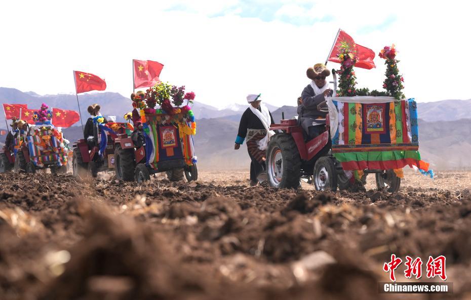3月16日,是西藏農(nóng)區(qū)開耕的日子。村民身著節(jié)日盛裝,相聚在田間。傳統(tǒng)的“二牛抬杠”開啟“第一犁”后,拖拉機緊隨其后,婦女將手中的種子撒下,祈求風調(diào)雨順、農(nóng)業(yè)豐收。圖為西藏拉薩市林周縣強嘎鄉(xiāng)春耕儀式現(xiàn)場。中新社記者 李林 攝