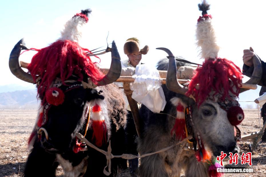 3月16日,是西藏農(nóng)區(qū)開耕的日子。村民身著節(jié)日盛裝,相聚在田間。傳統(tǒng)的“二牛抬杠”開啟“第一犁”后,拖拉機緊隨其后,婦女將手中的種子撒下,祈求風調(diào)雨順、農(nóng)業(yè)豐收。圖為西藏拉薩市林周縣強嘎鄉(xiāng)春耕儀式現(xiàn)場,“二牛抬杠”開啟“第一犁”。中新社記者 李林 攝