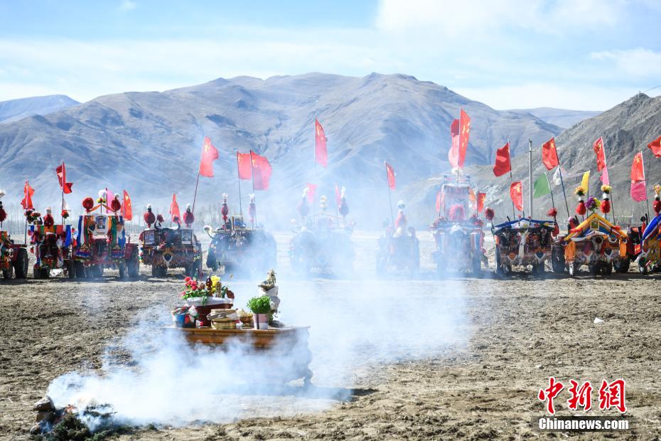 3月16日,西藏拉薩迎來(lái)一年一度的傳統(tǒng)春耕儀式。當(dāng)日,拉薩市曲水縣色達(dá)村村民身著節(jié)日盛裝,相聚在田間,載歌載舞,共同迎接春耕第一犁。家家戶(hù)戶(hù)端著自家的“切瑪”(象征五谷豐登)帶著青稞酒、酥油茶等物品聚在田間,互敬青稞酒,開(kāi)始撒種,祈求全年風(fēng)調(diào)雨順、五谷豐登。圖為曲水縣色達(dá)村春耕儀式現(xiàn)場(chǎng),當(dāng)?shù)孛癖姳硌菸璧浮栋⒓诎汀贰?span>中新社記者 貢嘎來(lái)松 攝
