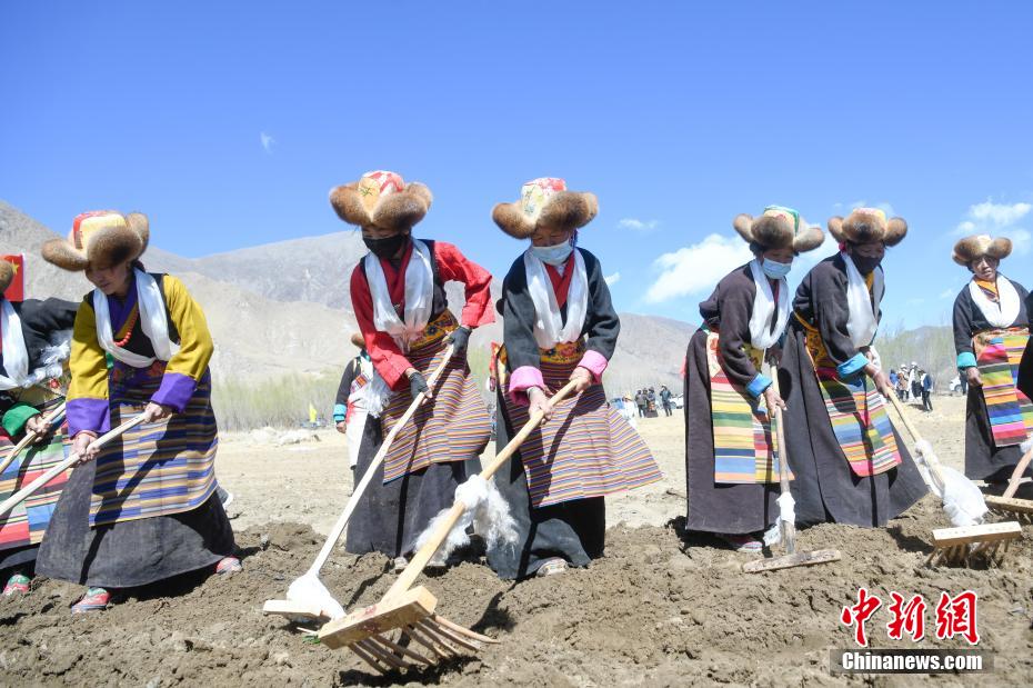 3月16日,西藏拉薩迎來(lái)一年一度的傳統(tǒng)春耕儀式。當(dāng)日,拉薩市曲水縣色達(dá)村村民身著節(jié)日盛裝,相聚在田間,載歌載舞,共同迎接春耕第一犁。家家戶(hù)戶(hù)端著自家的“切瑪”(象征五谷豐登)帶著青稞酒、酥油茶等物品聚在田間,互敬青稞酒,開(kāi)始撒種,祈求全年風(fēng)調(diào)雨順、五谷豐登。圖為曲水縣色達(dá)村春耕儀式現(xiàn)場(chǎng)。中新社記者 貢嘎來(lái)松 攝