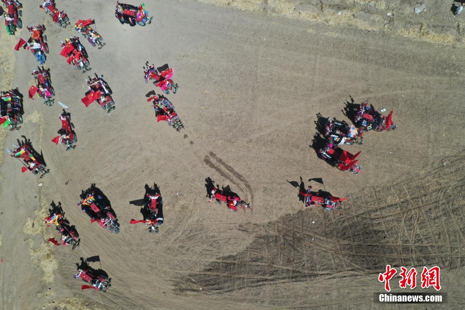 3月16日,西藏拉薩迎來(lái)一年一度的傳統(tǒng)春耕儀式。當(dāng)日,拉薩市曲水縣色達(dá)村村民身著節(jié)日盛裝,相聚在田間,載歌載舞,共同迎接春耕第一犁。家家戶(hù)戶(hù)端著自家的“切瑪”(象征五谷豐登)帶著青稞酒、酥油茶等物品聚在田間,互敬青稞酒,開(kāi)始撒種,祈求全年風(fēng)調(diào)雨順、五谷豐登。圖為曲水縣色達(dá)村春耕儀式現(xiàn)場(chǎng)(無(wú)人機(jī)照片)。中新社記者 貢嘎來(lái)松 攝