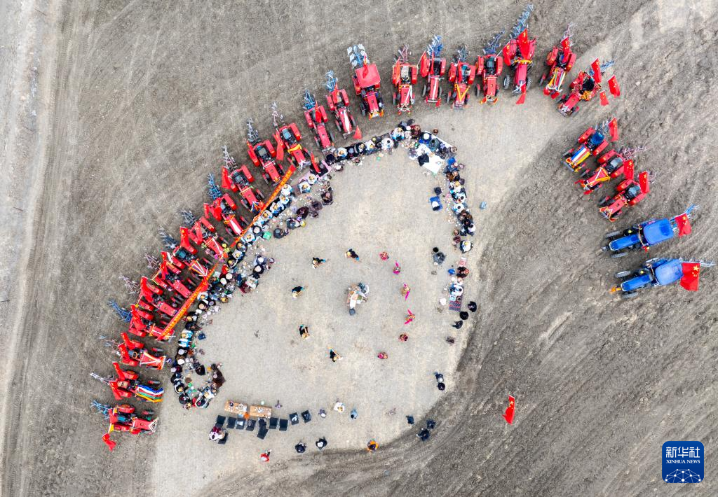 西藏拉孜縣曲下鎮(zhèn)土林村春耕典禮現(xiàn)場(chǎng)(3月16日攝,無(wú)人機(jī)照片)。新華社記者 姜帆 攝