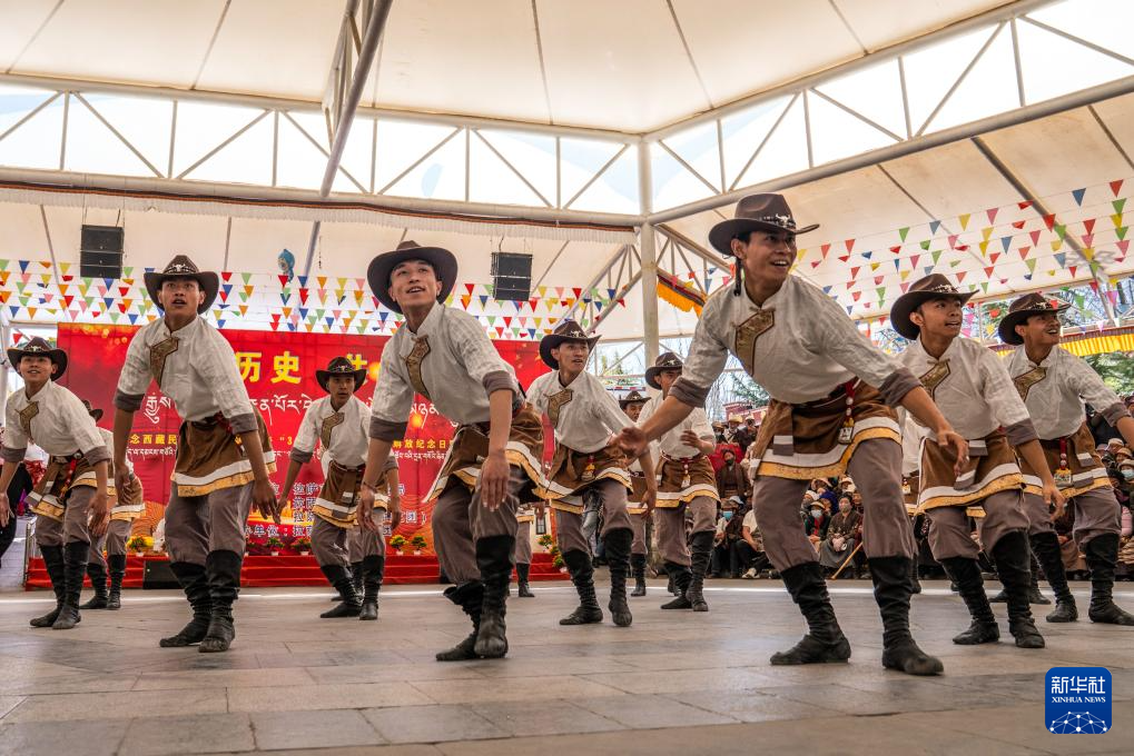 3月28日,群眾在拉薩市宗角祿康公園觀看文藝演出,慶祝西藏百萬(wàn)農(nóng)奴解放66周年。新華社記者 丁增尼達(dá) 攝