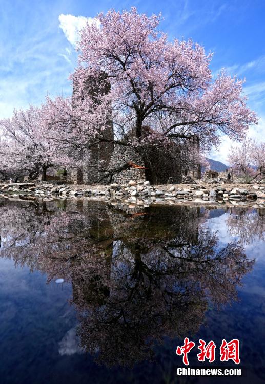 秀巴古堡位于西藏林芝市工布江達縣,是古代的軍事設施,距今已有1600多年的歷史。時下,古堡之下遍布的桃花競相綻放,粉白桃花點綴著滄桑古堡,景色壯麗。圖為4月5日,秀巴古堡下桃花綻放。中新社記者 李林 攝
