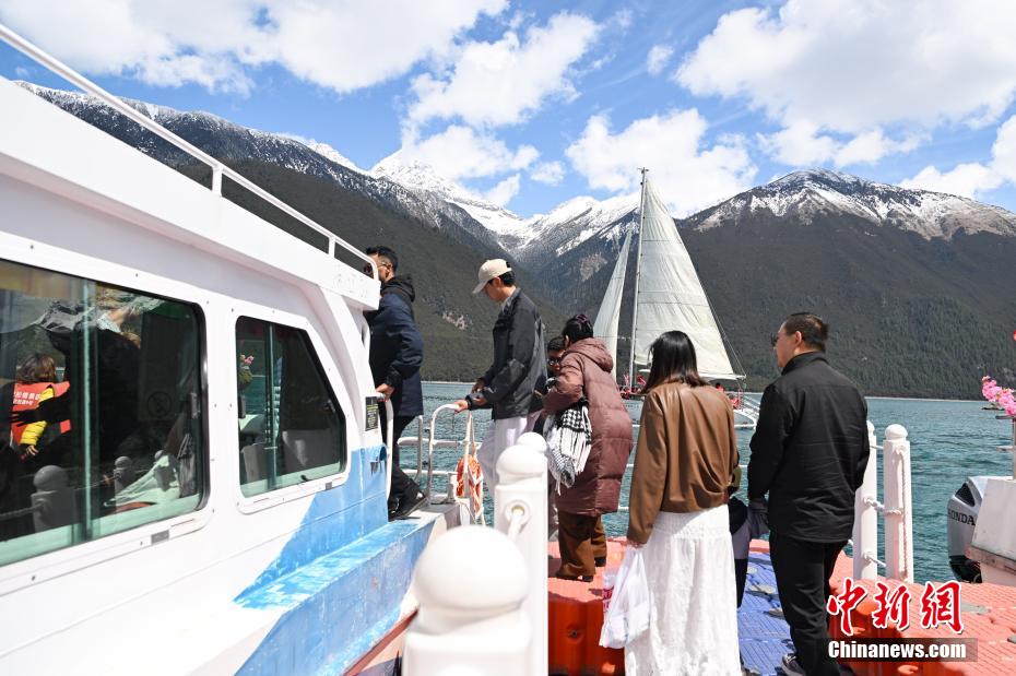4月6日,西藏林芝工布江達縣巴松措景區(qū)游人如織。春日里,湛藍(lán)湖水與巍峨雪山相映成趣,游客游玩湖心島或乘船游覽,沉醉在這湖光山色中。圖為游客準(zhǔn)備乘船游覽巴松措。中新社記者 貢嘎來松 攝