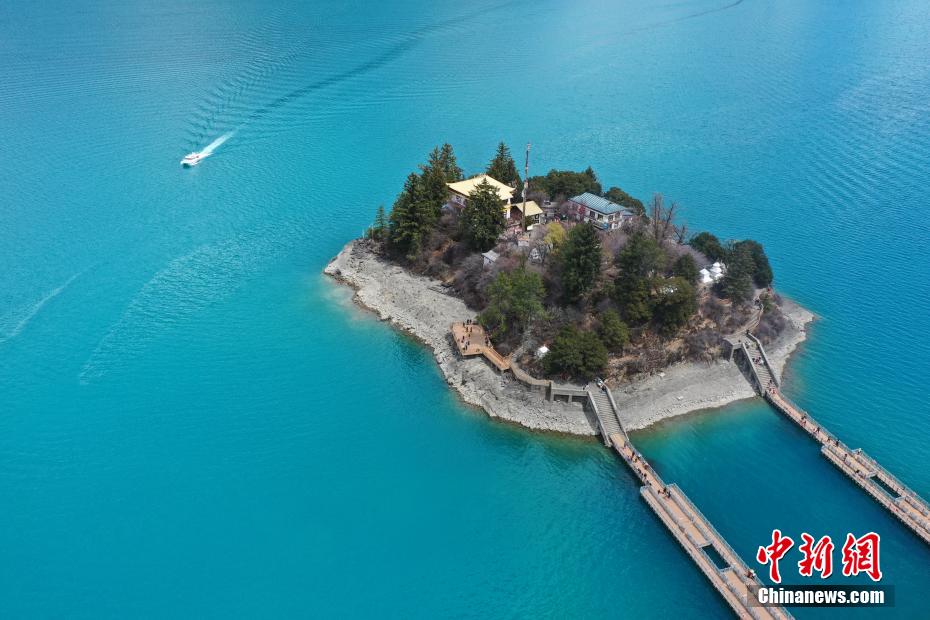 4月6日,西藏林芝工布江達縣巴松措景區(qū)游人如織。春日里,湛藍(lán)湖水與巍峨雪山相映成趣,游客游玩湖心島或乘船游覽,沉醉在這湖光山色中。圖為游客在巴松措湖心島游玩。中新社記者 貢嘎來松 攝