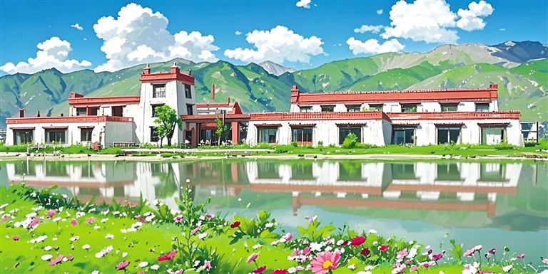 “我就是想以動(dòng)畫(huà)風(fēng)格給大家展示不一樣的堆龍?!钡┰隼氛f(shuō)。只見(jiàn)她又將照片導(dǎo)入AI圖片生成軟件內(nèi),AI自動(dòng)識(shí)別圖像元素——經(jīng)幡的布料特性、水流的物理參數(shù)、建筑材質(zhì)的反光數(shù)據(jù)。輕點(diǎn)“生成”按鈕,1分23秒后,一張動(dòng)畫(huà)風(fēng)格的Shadada CoffeeX新型公共文化空間的圖片便呈現(xiàn)在眼前。重點(diǎn)不是技術(shù),是審美把關(guān),旦增拉姆指著屏幕上的失敗案例:“AI把青稞田處理成糖果色卡通,把圖書(shū)館渲染成賽博朋克風(fēng)格。我每天要調(diào)整無(wú)數(shù)次參數(shù),就像教AI理解什么是藏地美學(xué)?!彼米瞵F(xiàn)代化的數(shù)字工具,“描繪”著堆龍德慶區(qū)新的光影詩(shī)篇。