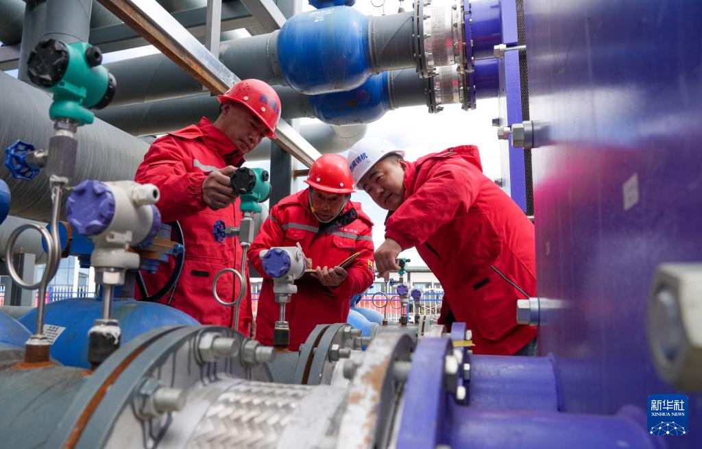 4月26日,西藏錦杭新能源有限責任公司工作人員在檢查換熱站運行工況。新華社記者 晉美多吉 攝