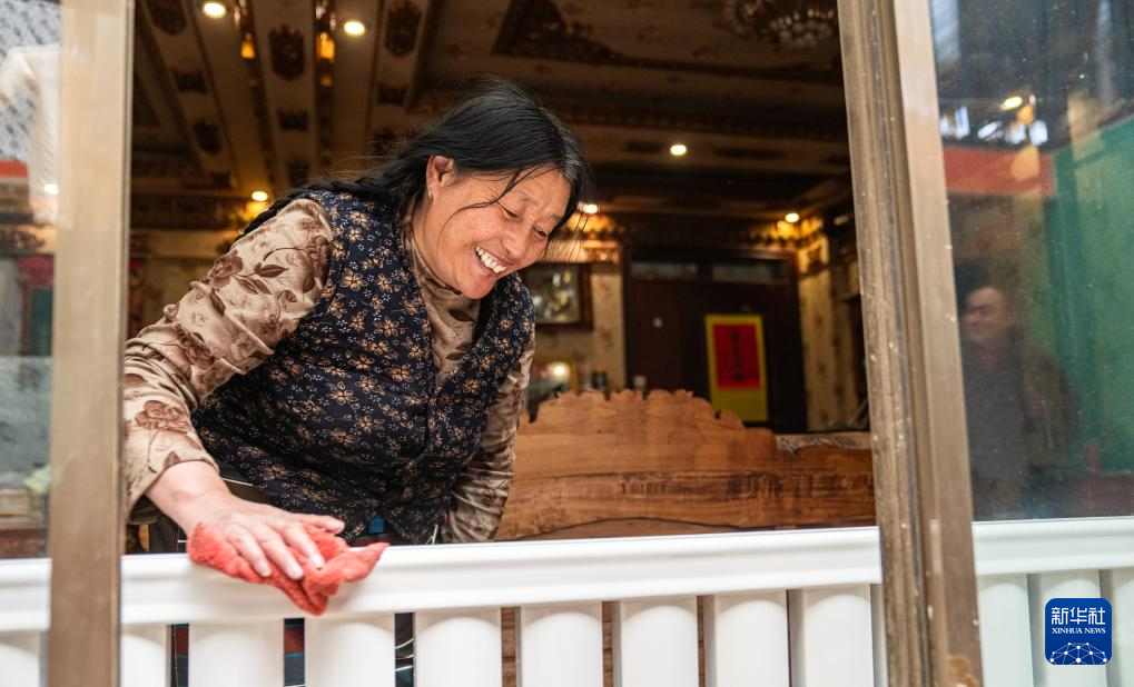4月26日,那曲市團結小區(qū)居民在擦拭暖氣片。新華社記者 丁增尼達 攝