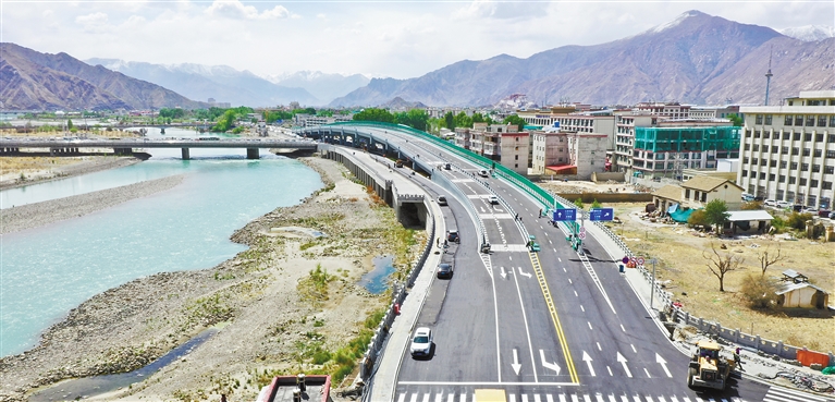 據(jù)了解,該項(xiàng)目位于拉薩河北岸,建設(shè)內(nèi)容包括跨線橋、地面道路、給排水管線、綜合管溝、照明、景觀等。其中,跨線橋全長605米,雙向4車道,設(shè)計(jì)時(shí)速40公里。地面道路長770米,按照城市次干路標(biāo)準(zhǔn),設(shè)計(jì)時(shí)速30公里。項(xiàng)目的建成通車,將有效緩解拉薩市東西向交通壓力,優(yōu)化城市主干路網(wǎng)結(jié)構(gòu),對促進(jìn)拉薩河沿線生態(tài)保護(hù)、景觀提升和區(qū)域開發(fā)具有重要意義。