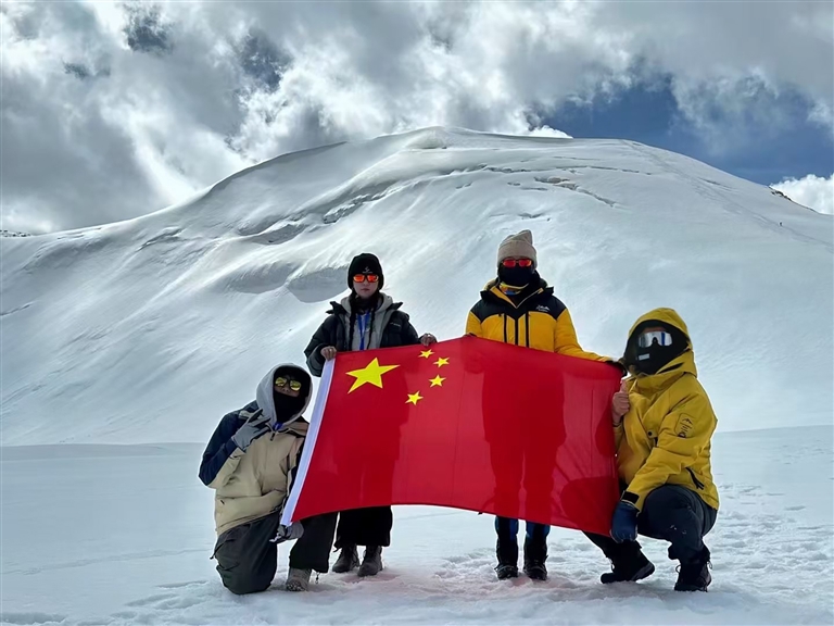 鄒師思告訴記者:“登山過(guò)程中,我們團(tuán)隊(duì)展現(xiàn)了高度的專業(yè)性與協(xié)作力。學(xué)院領(lǐng)導(dǎo)提前提供物資與精神支持,專業(yè)教練指導(dǎo)徒步與技術(shù)訓(xùn)練。在海拔5500—6000米段,隊(duì)伍統(tǒng)一行軍節(jié)奏,避免體溫流失或體力透支;登頂時(shí),訓(xùn)練突出者率先觸頂,為體力較弱者提供鼓勵(lì)與幫助。”她感慨:“團(tuán)隊(duì)協(xié)作是登頂?shù)年P(guān)鍵,真正的勇氣源于科學(xué)準(zhǔn)備與戰(zhàn)略堅(jiān)持?!?/p>