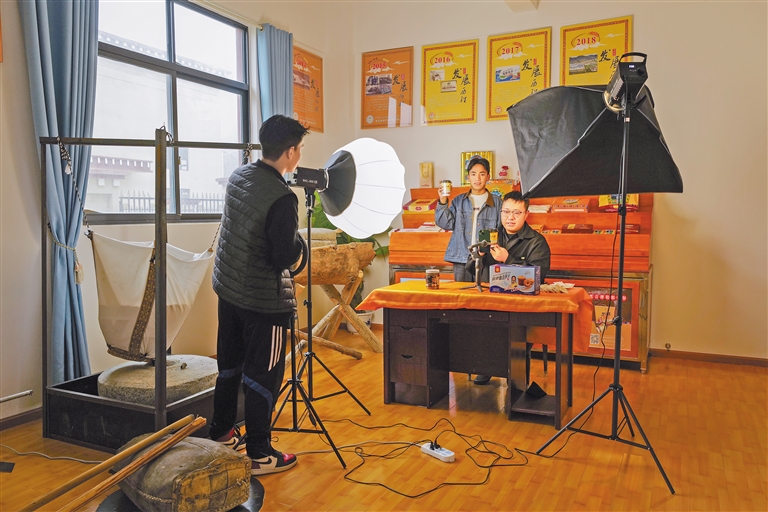 圖為洛隆縣洛宗特色產品開發(fā)公司的工作人員正在直播銷售青稞掛面及青稞餅干。記者 丹增群培 攝