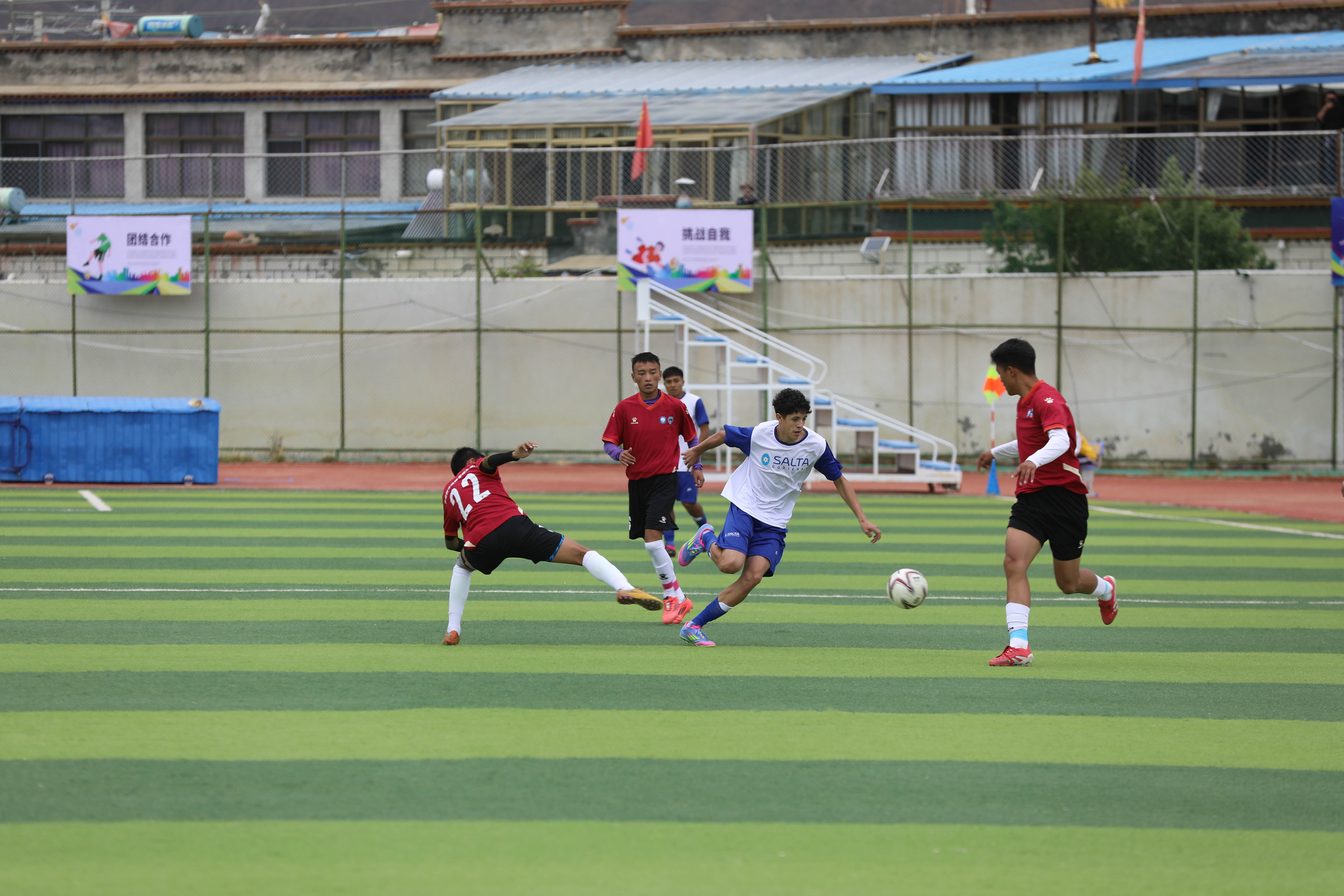 同樣來自三千多米的高海拔地區(qū),南美高原和青藏高原的年輕人們一見如故。盡管語言不通、文化各異,但對足球的純粹熱愛讓他們迅速打破隔閡。在比賽間隙,雙方通過足球術(shù)語、肢體語言和會(huì)心微笑進(jìn)行交流互動(dòng)。