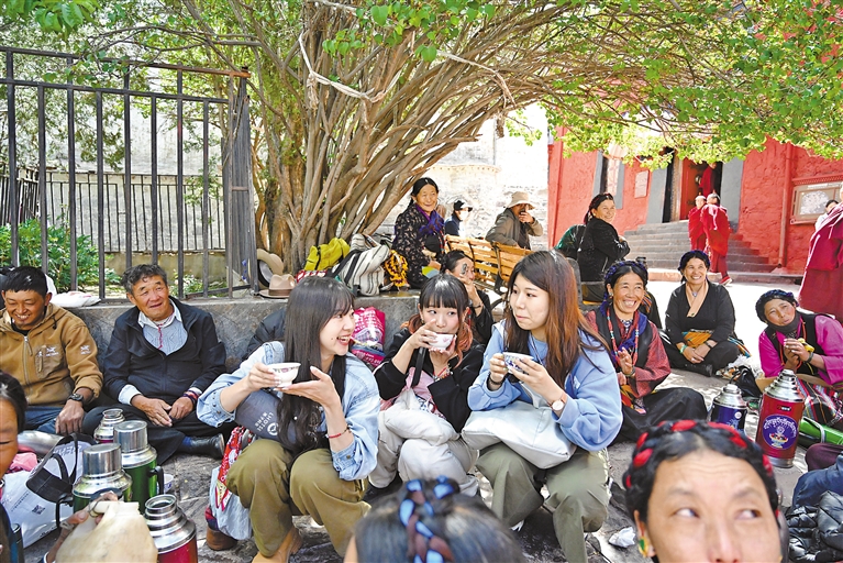 導(dǎo)游在為游客講解扎什倫布寺相關(guān)情況。