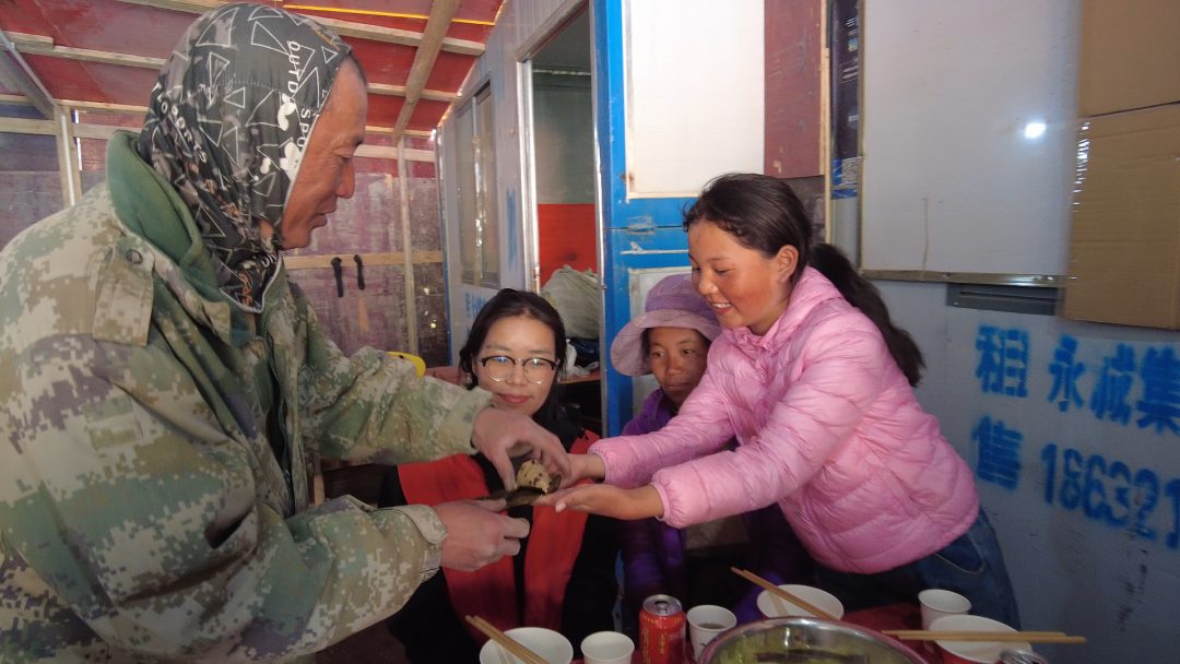 端午前夕,這份情誼化作最美的畫(huà)面。5月29日,康孔村飄著酥油香與粽葉青。村民準(zhǔn)備了酥油茶、水果,施工隊(duì)也擺上四菜一湯和粽子。大家圍坐在一起,你給我倒酥油茶,我給你遞粽子,歡聲笑語(yǔ)不斷。