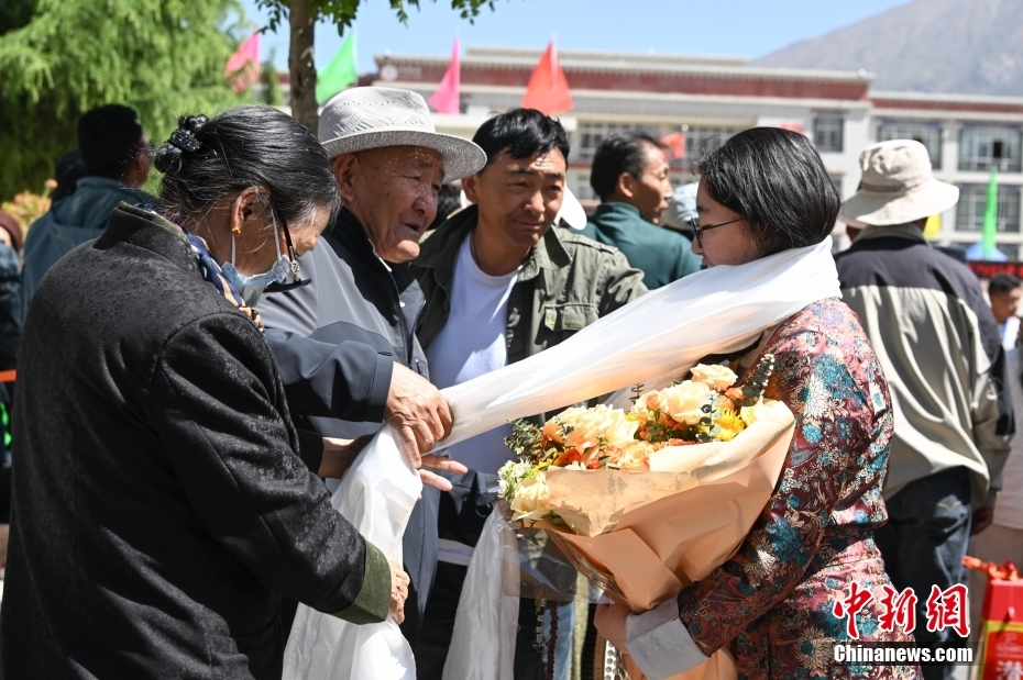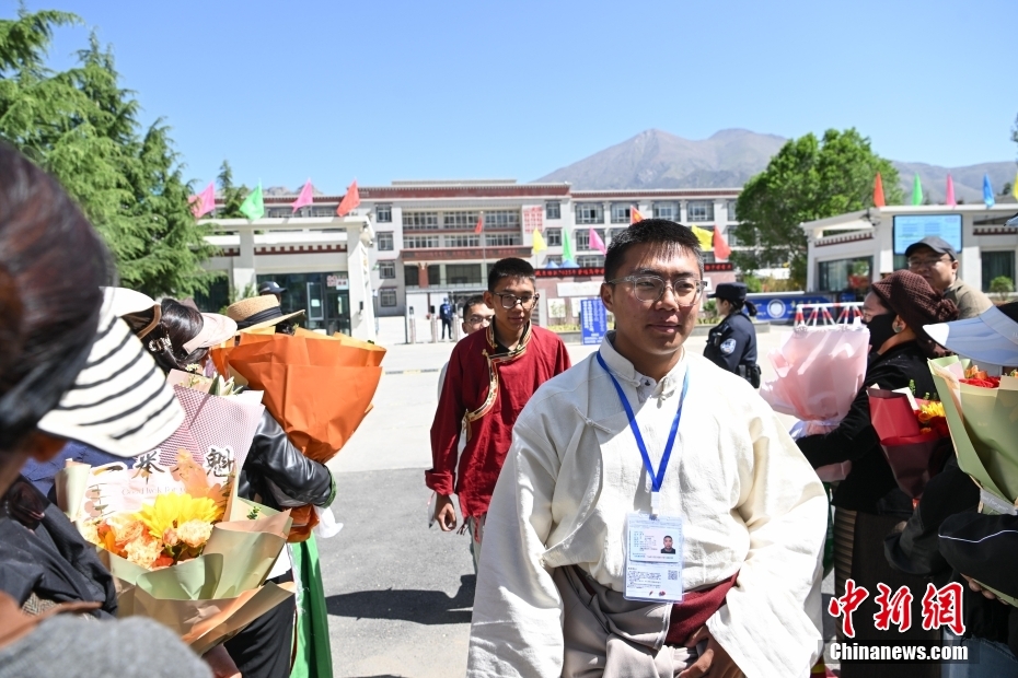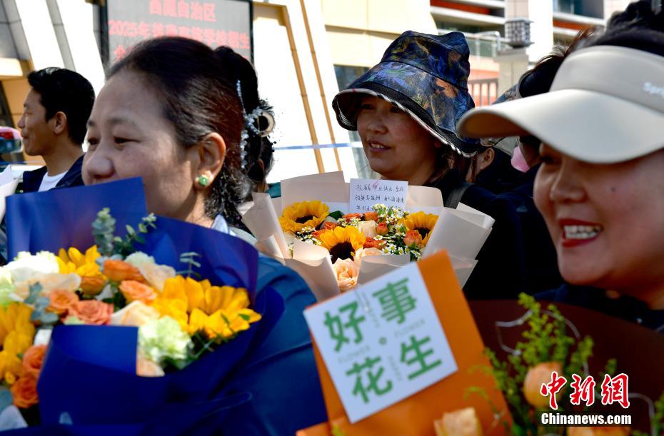 6月9日,西藏拉薩江蘇實(shí)驗(yàn)中學(xué)考點(diǎn)外親友為考生送鮮花。當(dāng)日,西藏自治區(qū)2025年普通高考完成所有科目考試,2025年西藏高考落下帷幕。中新社記者 貢嘎來松 攝