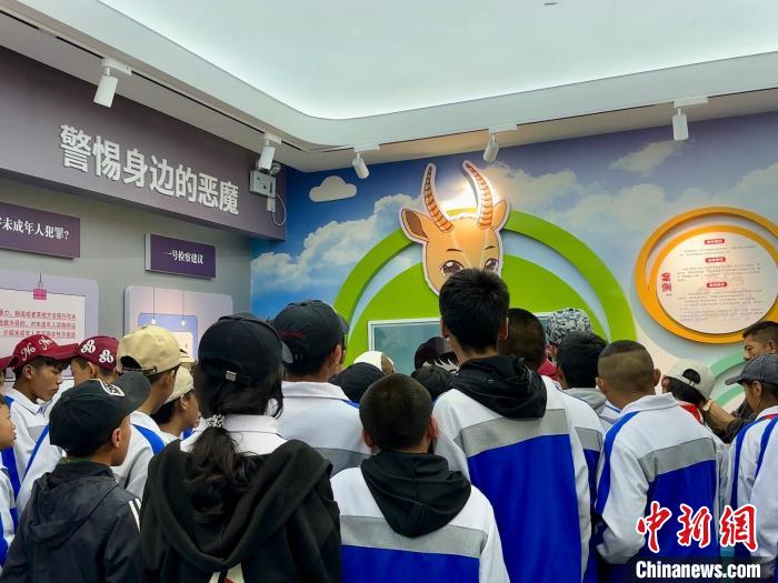 圖為拉薩市第一中學(xué)學(xué)生在拉薩市青少年法治教育基地內(nèi)學(xué)習(xí)法治知識(shí)。謝牧 攝
