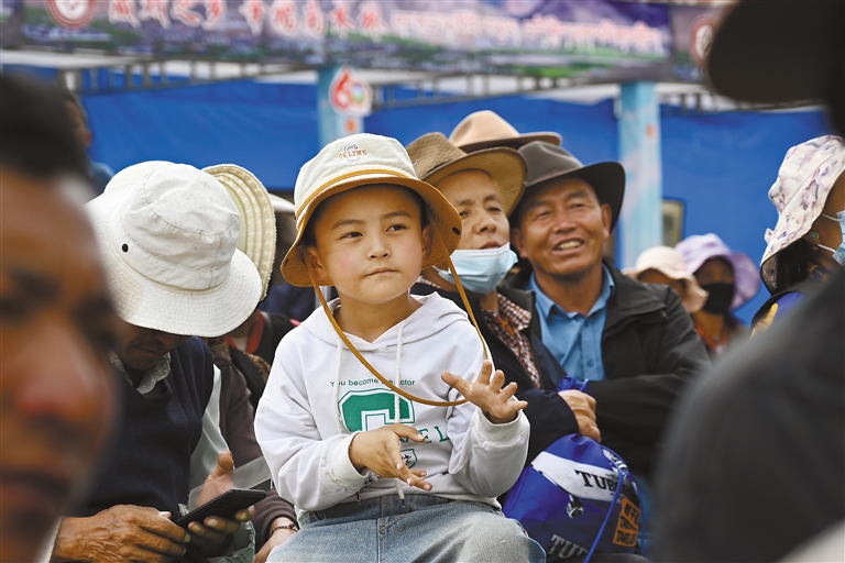 認真觀看藏戲表演的小觀眾。