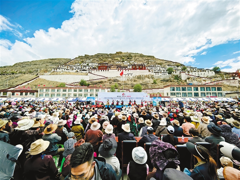 在日喀則市喜迎西藏自治區(qū)成立60周年暨2025年“文化和自然遺產(chǎn)日”非遺宣傳展示活動中,來自全市各縣(區(qū))的19支藏戲隊輪番展演,各色非遺產(chǎn)品集中亮相,為現(xiàn)場觀眾獻上了一場“非遺盛宴”。