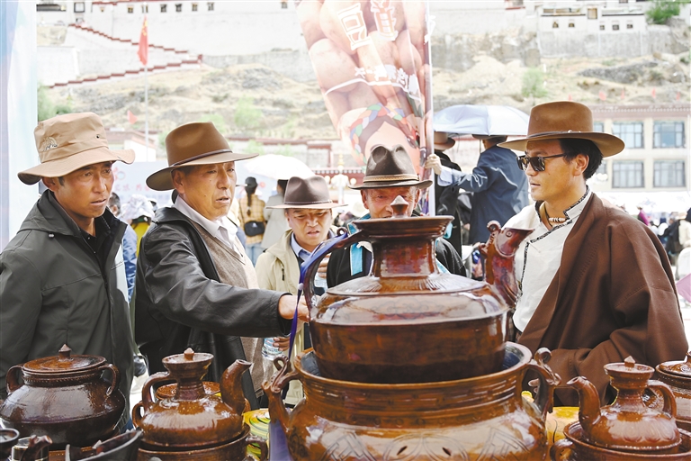 在欣賞視聽盛宴的同時,國家級非遺項目江孜卡墊織造技藝、自治區(qū)級非遺項目牛村陶器制作技藝、市級非遺項目恰哇編織技藝等50個非遺項目,以及民族手工業(yè)產(chǎn)品、南木林縣縣級非遺產(chǎn)品集中展覽展銷,備受消費者青睞。各非遺產(chǎn)品展銷點收入不斷、訂單不斷,經(jīng)初步統(tǒng)計,活動現(xiàn)場非遺產(chǎn)品銷售總額達45萬余元。