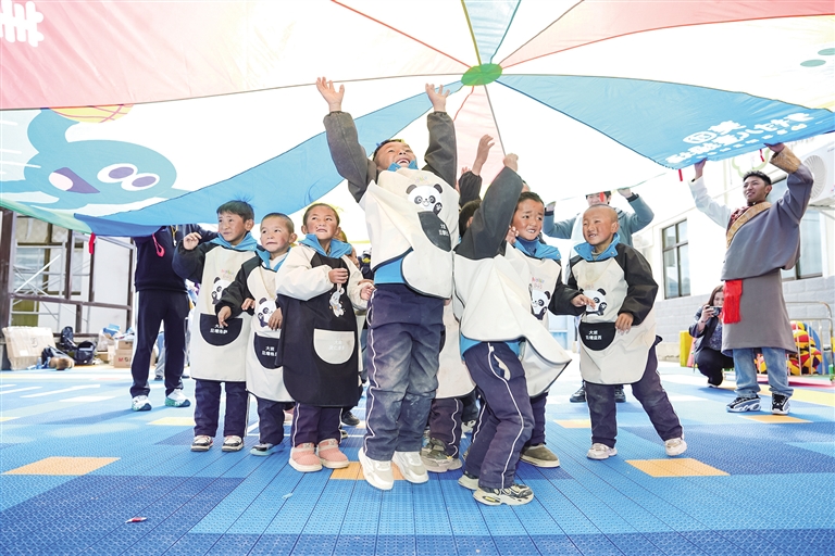 “老師快看!這里有跑道和斑馬線,太漂亮啦!”定日縣長所鄉(xiāng)幼兒園的拉巴次仁第一次踏上新落成的“太陽花”操場,興奮地邊跑邊向老師展示。據(jù)記者了解,此前孩子們在破損的懸浮地板上活動時經(jīng)常摔倒,遇上雨雪天氣,戶外活動也只能取消。