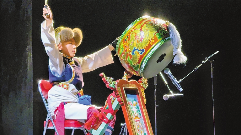 扎西多吉從小學(xué)一年級(jí)起便跟隨老師學(xué)藝,憑借扎實(shí)功底曾在“中國少兒戲曲小梅花薈萃”活動(dòng)中獲得“小梅花”稱號(hào)?!八竟氖遣貞虻撵`魂節(jié)奏,每一次擊打都要帶著對(duì)傳統(tǒng)文化的敬意?!边@位14歲少年的專注與執(zhí)著,不僅收獲了藝術(shù)成就,更錘煉出沉穩(wěn)大氣的品格。母親措姆欣慰地表示:“看著孩子在藏戲?qū)W習(xí)中成長(zhǎng),是最幸福的事?!?/p>