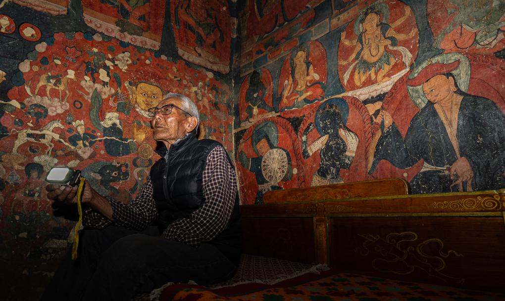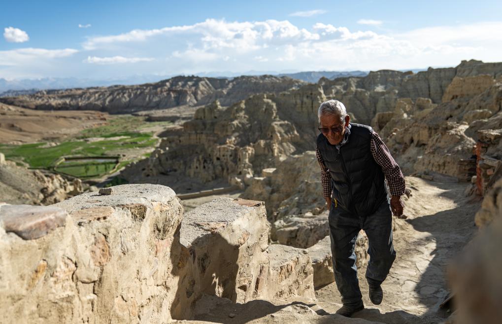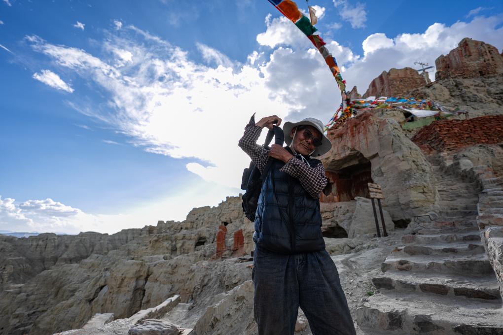 仁增旺扎巡查各個石窟,這是他多年來的習(xí)慣(2023年5月26日攝)。