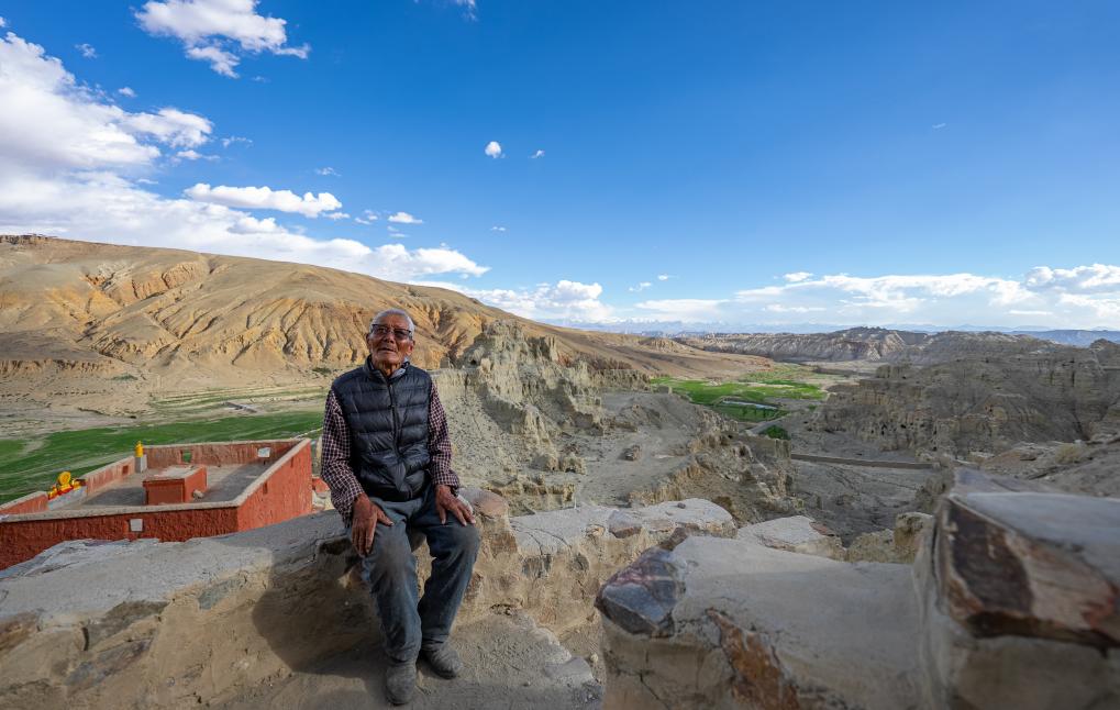 今年77歲的仁增旺扎家住西藏阿里地區(qū)札達縣東嘎村皮央組。他的家與宏偉壯觀的皮央石窟僅咫尺之遙,民居依偎在高聳的石窟群之下,形成了強烈的視覺落差。皮央石窟群與兩公里外的東嘎扎西曲林寺遺址一起組成了西藏最大的佛教石窟遺址——皮央和東嘎石窟遺址。