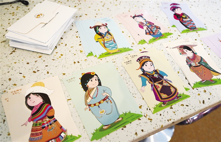 目前,藏博郵禮郵政服務(wù)點(diǎn)已向公眾免費(fèi)提供13枚主題印章的集章服務(wù)。其中,鎮(zhèn)館之寶章以昌都卡若遺址出土的雙體陶罐為原型,將新石器時(shí)代的歷史厚重凝練于方寸之間;格桑花與張大人花章則以高原特色花卉為媒,定格雪域的生態(tài)之美;而博物館原創(chuàng)卡通形象“寧吉姆啦”的萌趣造型,更以年輕化表達(dá)拉近了公眾與文化遺產(chǎn)的距離。此外,還特別提供了手寫藏文祝福服務(wù)——工作人員日均書寫40至70張、旺季單日超百?gòu)埖牟匚陌妗霸鞯吕铡?,不僅承載著語言藝術(shù)的魅力,更以筆尖的溫度將人文關(guān)懷鐫刻成游客珍藏的“文化信物”。