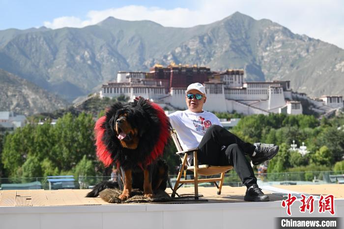 7月7日,游客在西藏拉薩市的一家景觀咖啡廳拍攝以布達拉宮為背景的 “旱地拔蔥” 。中新社記者 貢嘎來松 攝