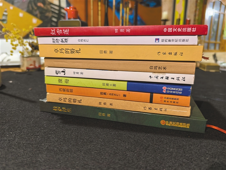 白瑪次仁的藝術(shù)疆域遼闊非凡。除《藏地悲歌》《田勇詩(shī)選》等詩(shī)歌集外,其長(zhǎng)篇小說(shuō)《雪山》《紅雪蓮》以史詩(shī)氣質(zhì)鐫刻高原魂魄,哲學(xué)集《小樹菩提》則展露思辨鋒芒。更令人驚嘆的是其跨界才華——繪畫與書法,雖未經(jīng)系統(tǒng)訓(xùn)練,卻自成一格。