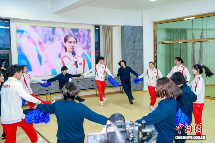 宣講結(jié)束后,運(yùn)動場上的互動點燃了全場熱情。乒乓臺前,馬龍手持球拍與官兵切磋球技;羽毛球場,陳清晨與戰(zhàn)士組隊,你來我往間展現(xiàn)默契與活力;拳擊場上,李倩親自示范動作要領(lǐng),手把手和官兵“過招”;瑜伽室里,郭崎琪舒展身姿,與女官兵歡樂共舞。此外,潘展樂還與官兵們進(jìn)行了遠(yuǎn)程連線,分享他的水上技巧和訓(xùn)練經(jīng)驗。