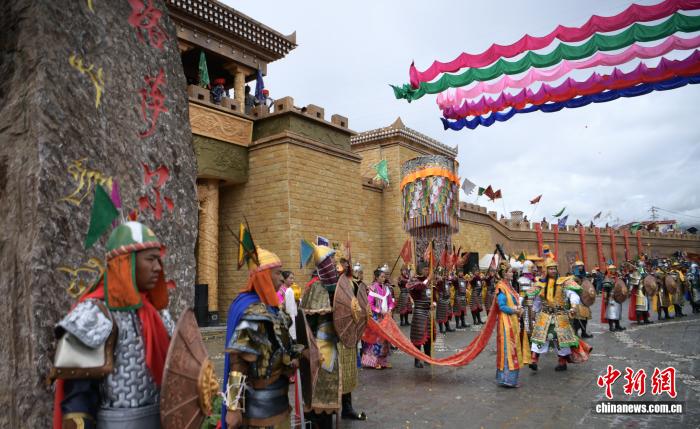 2019年9月16日,四川甘孜縣格薩爾王城暨百村產(chǎn)業(yè)基地舉行開城儀式,城內以格薩爾故事打造的景觀小品體驗地有1000余處,游客可聽《格薩爾》說唱、看《格薩爾》藏戲等。中新社記者 劉忠俊 攝