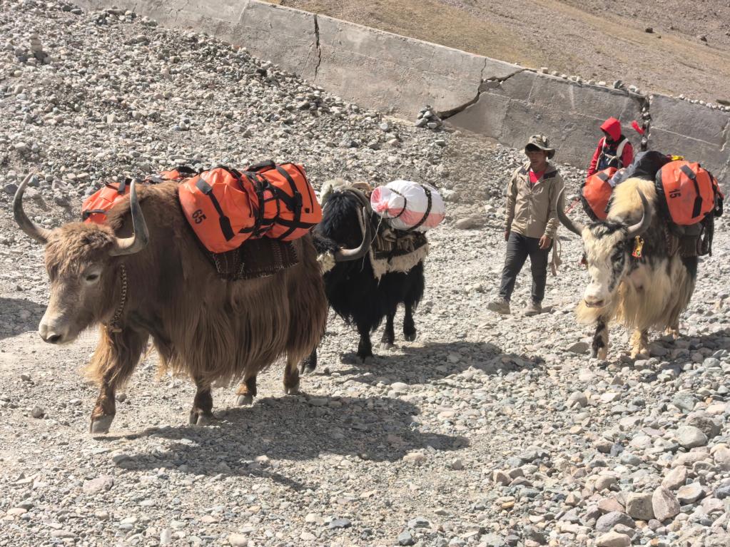 在徒步路線(xiàn)的起點(diǎn)廣場(chǎng)上,一隊(duì)隊(duì)牦牛隊(duì)整裝待發(fā),游客的行李正被穩(wěn)穩(wěn)地放上牛背。不少外籍游客雇傭本地牧民,利用牦牛馱運(yùn)行李并提供向?qū)Х?wù)。陳賢剛介紹,旅游業(yè)已成為巴嘎鎮(zhèn)經(jīng)濟(jì)的主導(dǎo)產(chǎn)業(yè),當(dāng)?shù)鼐用袷杖胫屑s一半來(lái)自旅游相關(guān)工作。