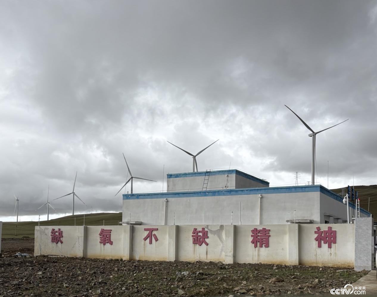 在哲古草原,巨大的風機葉片緩緩轉動,劃破長空。這里是三峽措美哲古風電場——全球海拔最高的在運行風電場,墻上“缺氧不缺精神”的標語,正是技術突破與綠色發(fā)展的信念的最好寫照。