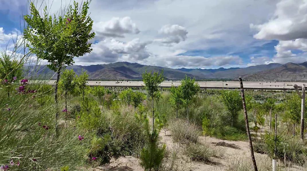 一路沿著拉薩河向西南行進(jìn),距離這里38公里的是拉薩南北山綠化工程貢嘎段。從腳下粗糲的沙土能看得出來,這里曾是一片不毛之地,現(xiàn)如今漫山遍野的沙柳和小樹苗,讓綠水青山初見雛形。4年來,包括拉薩、山南兩地在內(nèi)的南北山綠化工程已造林107.93萬畝,栽植苗木1.2億余株。