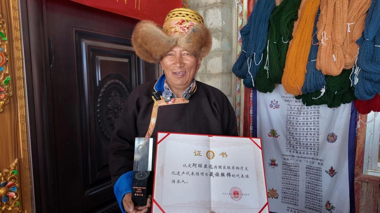 國家級(jí)非物質(zhì)文化遺產(chǎn)代表性項(xiàng)目藏族服飾代表性傳承人阿旺旦達(dá)。