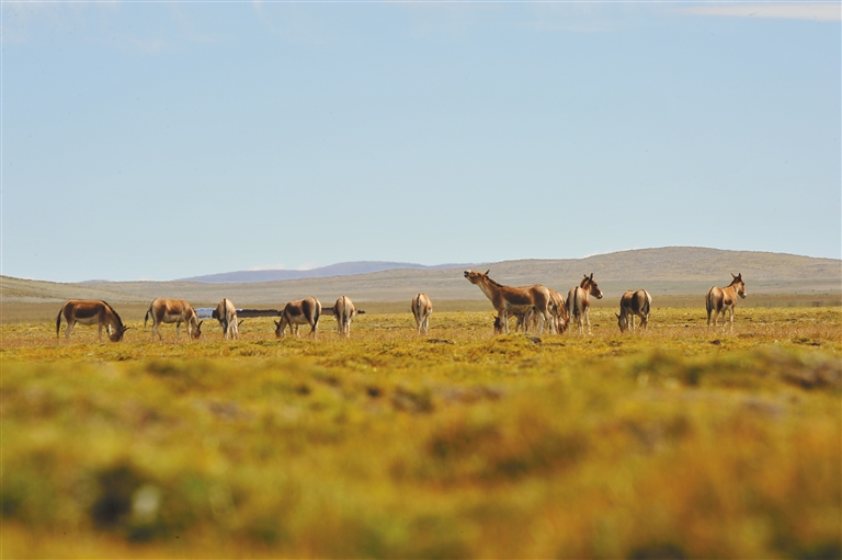 三江源國(guó)家公園唐北片區(qū)內(nèi)的藏野驢。記者 趙書彬 攝