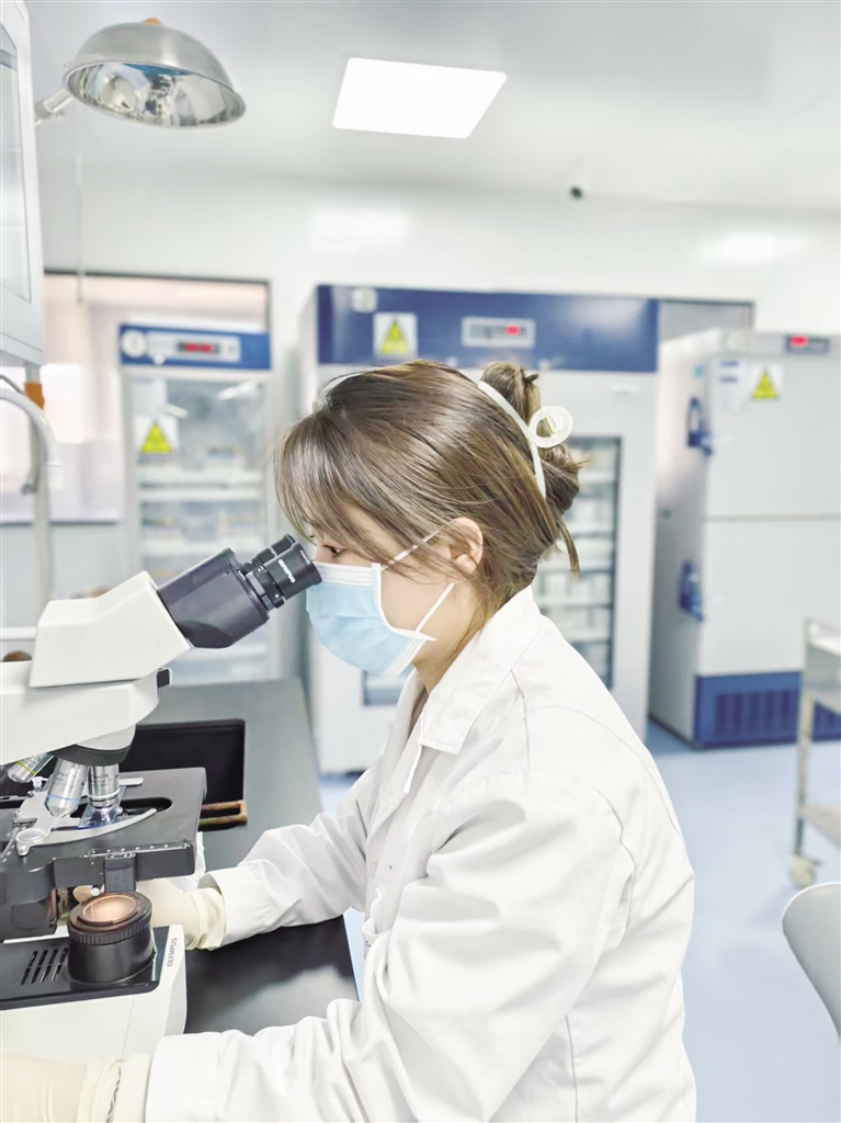 圖為次仁曲珍在顯微鏡下閱片。圖由黃君提供