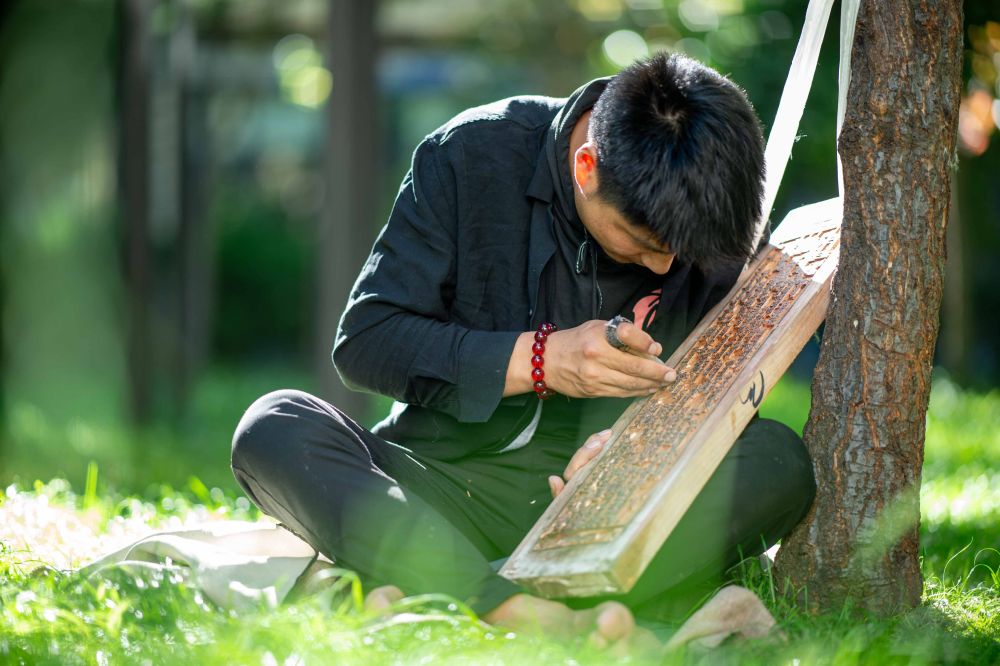 8月6日,雕刻師在工作中。西藏雪巴康雕版印刷制作技藝入選西藏自治區(qū)級(jí)非物質(zhì)文化遺產(chǎn)代表性項(xiàng)目名錄。