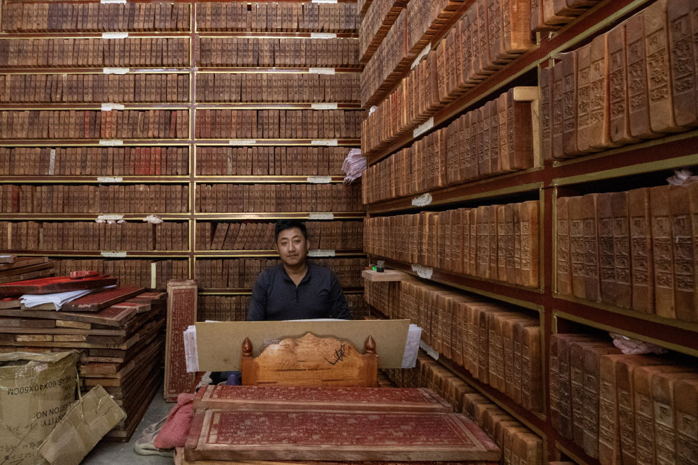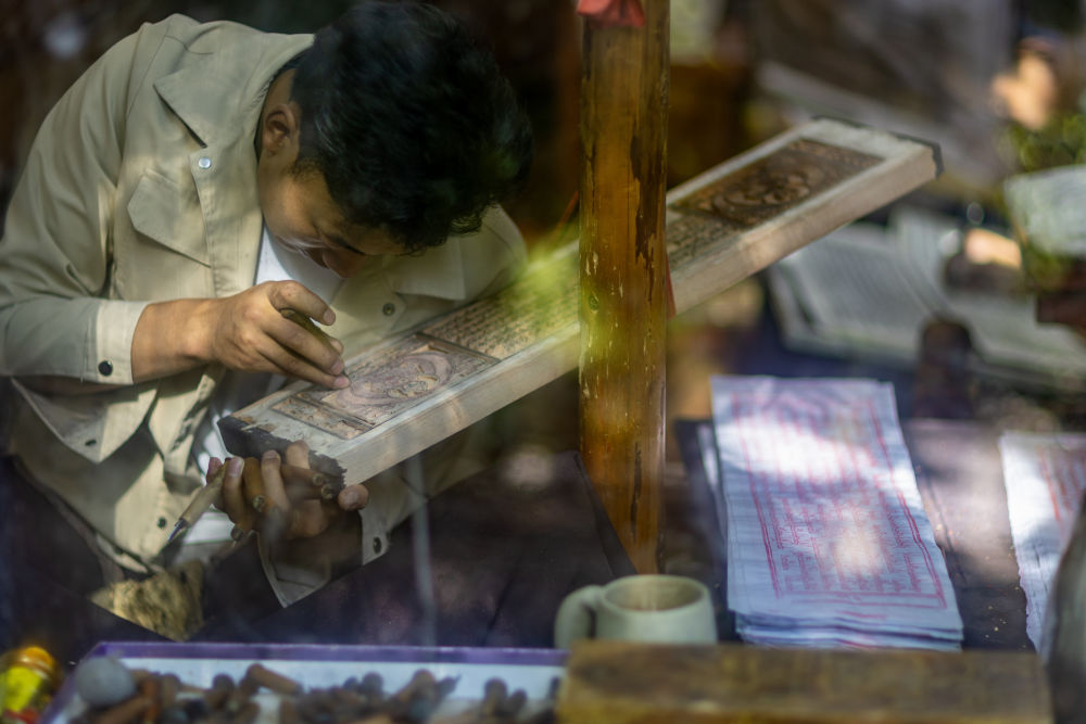 8月6日,一名雕刻師在工作中。西藏雪巴康雕版印刷制作技藝入選西藏自治區(qū)級(jí)非物質(zhì)文化遺產(chǎn)代表性項(xiàng)目名錄。