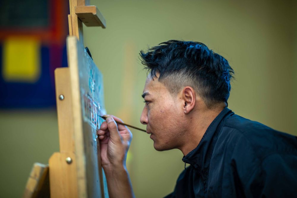 8月6日,一名畫師在繪制唐卡。藏族唐卡(齊吾崗派)入選國家級(jí)非物質(zhì)文化遺產(chǎn)代表性項(xiàng)目名錄。