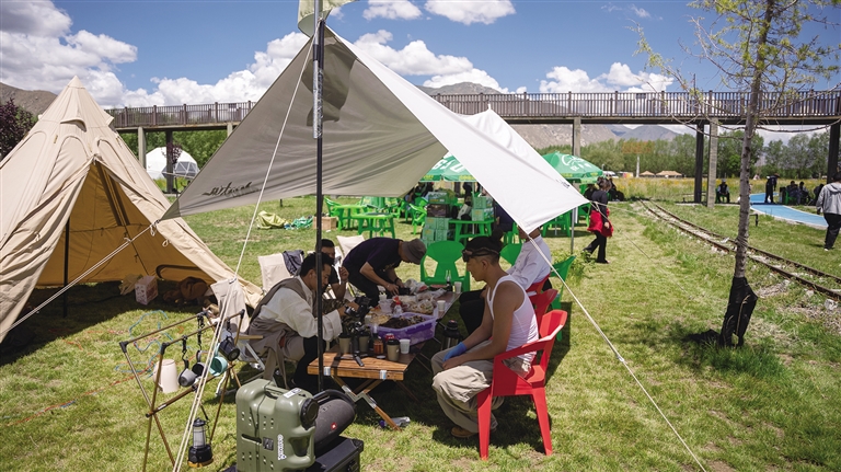記者看到,綠野市集“沖賽康”充滿(mǎn)了煙火氣,30余家特色攤位齊聚林間。這里不僅有藏式甜茶、糌粑制品等傳統(tǒng)美食,讓游客大飽口福,還有氆氌文創(chuàng)、非遺手作等特色產(chǎn)品,滿(mǎn)足游客的購(gòu)物需求。此外,互動(dòng)游戲與民俗體驗(yàn)也吸引了眾多游客參與,營(yíng)造出充滿(mǎn)活力的林卡生活場(chǎng)景。
