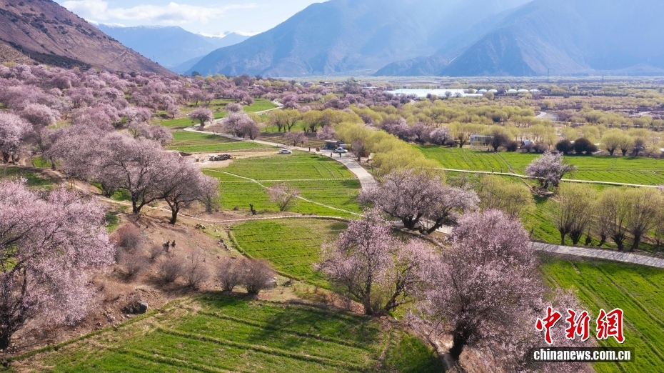 位于西藏拉薩北部山坳里的古剎帕邦喀周圍桃花盛開(kāi),吸引眾多游客前來(lái)觀光拍照。圖為帕邦喀周圍盛開(kāi)的桃花和遠(yuǎn)處的布達(dá)拉宮。中新社記者 貢嘎來(lái)松 攝